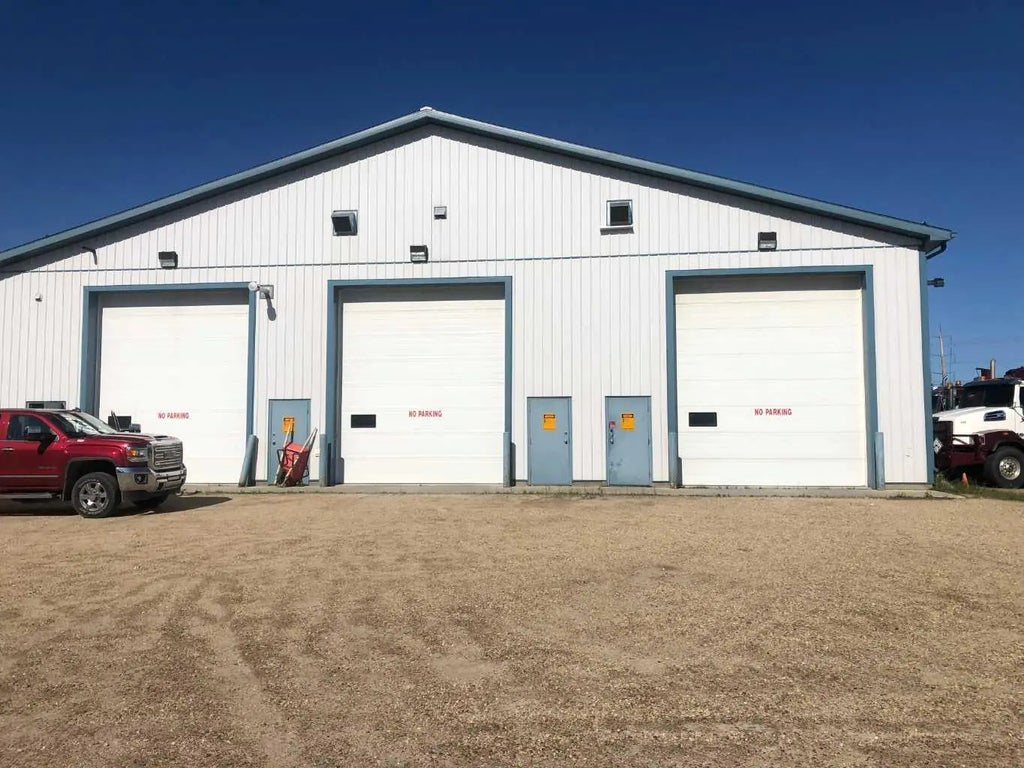 Sept. 1 /25 BONUS !!!!! 1ST 4 MONTHS FREE WITH A MINIMUM 2 YR. SIGNED LEASE. This 12,240 sq.ft. shop is in amazing condition and offers 1 large space or can be leased into 4 separate areas. The main space provides for a large Reception area 6 Offices, Parts room, Large Kirchen/Mtg room, Lunch room and 4 bathrooms. See floor plan attached. Renting the whole building is $12.00 per sq.ft. triple net. This will provide you with 3 individual shop spaces + Drive-thru wash Bay, plus all the offices. There are 3 OH doors at the Front as well as 3 at the Rear. This buliding has been very well maintained and improved upon. It is possible to remove the new interior shop walls to create one 8,800 sq.ft. of shop with 2 drive-thru bays + the drive-thru Wash Bay and the 3,440 sq.ft. of office space. As well there is plenty of exterior parking and storage available. Located just off Highway 43 in the new Industrial area.