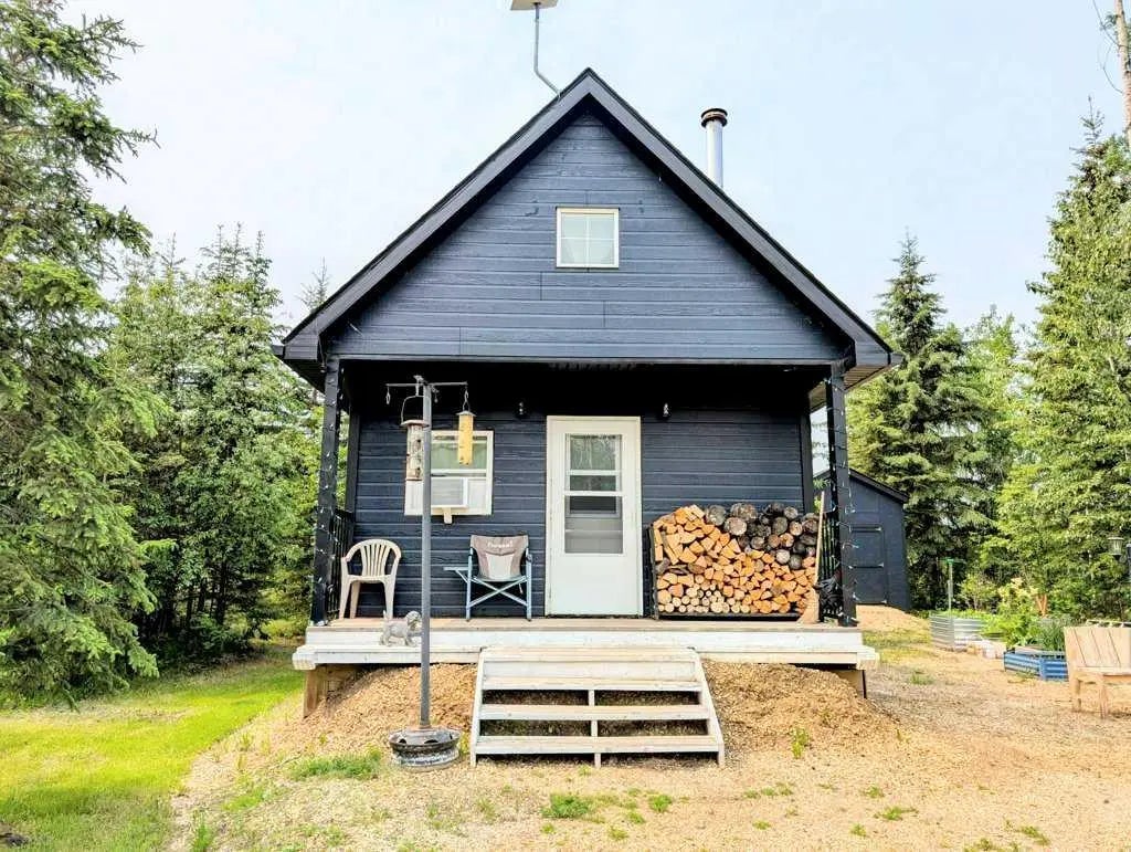 Gems like this property don’t come along often, located just a short walk from one of Alberta’s most beautiful lakes and a scenic marina, this cozy, well-crafted cabin is the perfect weekend retreat and has been built with top-quality materials including well-insulated 2"x6" walls, high-quality windows and doors, a tall ceiling with storage above the entrance and washroom, built-in bunk beds, and a generous storage closet; it also features a built-in cell phone signal booster, wood stove, electric heat, window-mounted A/C unit, and heat-taped water lines to prevent freezing, along with a curb stop for convenient water shut-off, all situated on 16 screw piles with a durable cement fibre board exterior and fully finished plywood interior ready for your personal touch; the spacious, well-manicured yard is surrounded by mature trees and includes two full sets of RV hookups with water, sewer, and power (30-amp, 50-amp, and 110V), a firepit, a 12'x6' shed with overhead door, and an additional 10'x16' shed, with all services trenched in deep to eliminate the chance of freezing; also included are the furniture, beds, and appliances, making this property move-in ready just in time for summer.